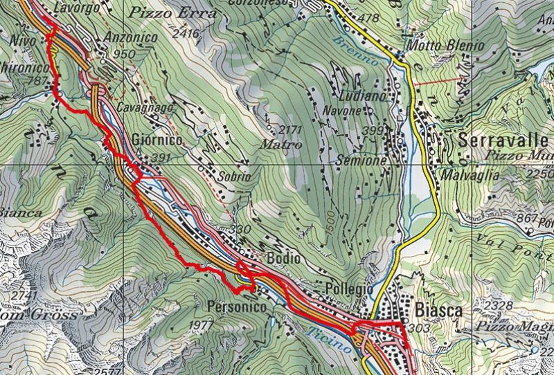 Ich starte also guten Mutes, durch das Dorf Richtung Nivo Lavorgo. Ab da fängt die Steigung nach Chironico an.[1-4]