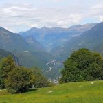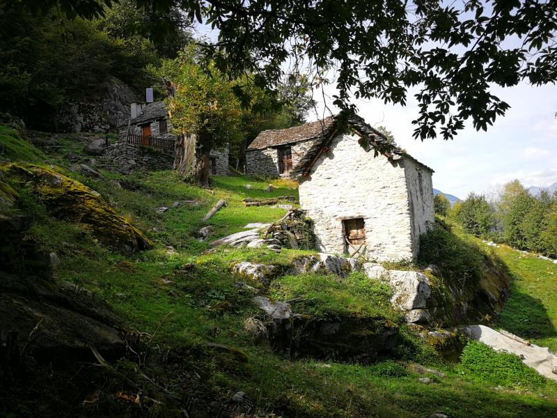 Vorbei an vielen Rustico, manche zerfallen, aber auch einige wieder aufgebaut. Beim höchsten Punkt dieser Ertappe auf 906 m erreiche ich Faidalo.[17] Ich bekomme noch einmal einen Blick zurück über die Strecke die ich in den letzten zwei Tage gelaufen bin.[16]