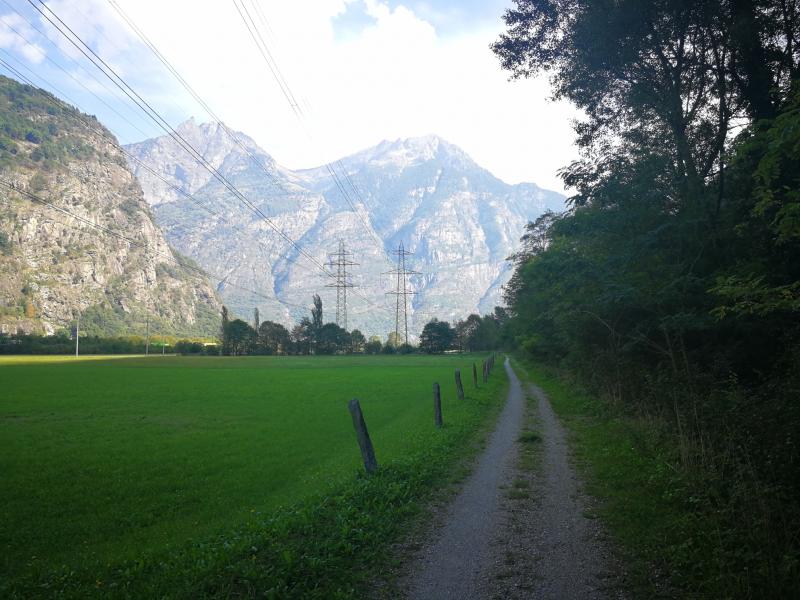 Auf halber Strecke kann ich in der Ferne mein Ziel sehen.[22] Im Tal angekommen geht es weiter dem Ticino entlang.[23] Und dann ist es soweit, ich erreiche Biasca mein Tagesziel.[24]