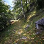 Auf diesem Weg sehe ich immer wieder größere Felsplatten die vom Gletscher aus der Eiszeit gebildet wurden.[5] Zu sehen links im Bild. Die Gletscher gingen damals bis Italien.