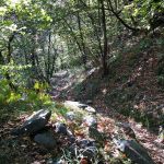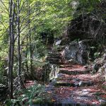 Unten angekommen mache ich eine erste Pause vor der Kirche San Nicola. Davor mit gesegneten Trauben für den besten Wein.[10] Nun geht es richtig los. Die Strecke wird als Gebirgsroute angezeigt. Es ist sehr anstrengend, die unzähligen Stufen hinauf nach Faidalo zu bewältigen.[11-12] Es geht an vielen kleinen Bächlein vorbei.[13] Wenn es grössere Sturzbäche zu überqueren gibt, hat es meistens eine Steinbrücke.[14]