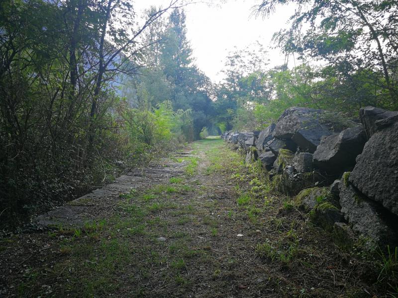 Von den einzelnen Abschnitten bis zum nächsten, erscheint es mir aber unendlich zu sein. Bei Lodrino wird der Ticino wieder überquert, nun geht es bis Bellinzona nur noch auf der linken Seite weiter.[5] auch auf dieser Seite ist es nicht anders, lang sind die Wege. Von Zeit zu Zeit kommt mal ein Holzsteg, weil es einen Bergbach zu überqueren gilt, aber das war es dann auch schon.[6-7]