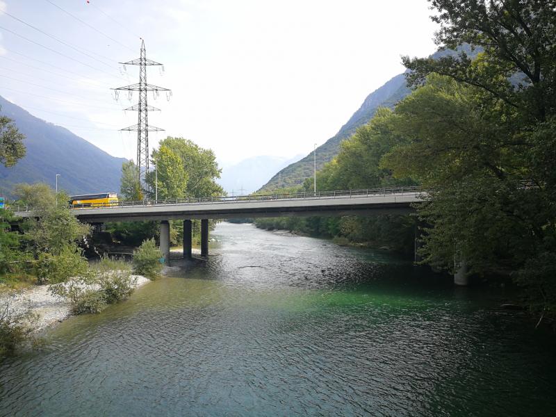 Der Ticino wird ein erstes Mal überquert, so dass ich auf der rechten Seite an ihm Richtung Bellinzona entlang marschieren werde.[1]