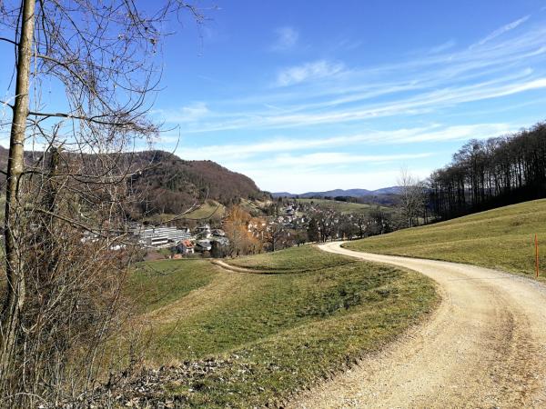 Der erste Abschnitt, ca. 3.5km geht alles bergauf. Zeitweise sehr steil war der Weg, aber immer wieder habe ich eine herrliche Aussicht Richtung Basel erhalten.
