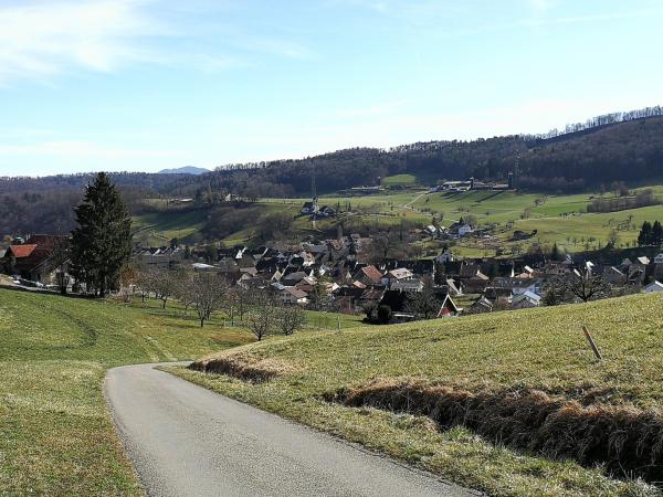 Auch hier habe ich wieder eine herrliche Fernsicht. Nun noch das letzte Stück meiner Wanderung. Es geht runter nach Lampenberg. Im Ort führt der Weg noch ein letztes mal etwas bergauf.